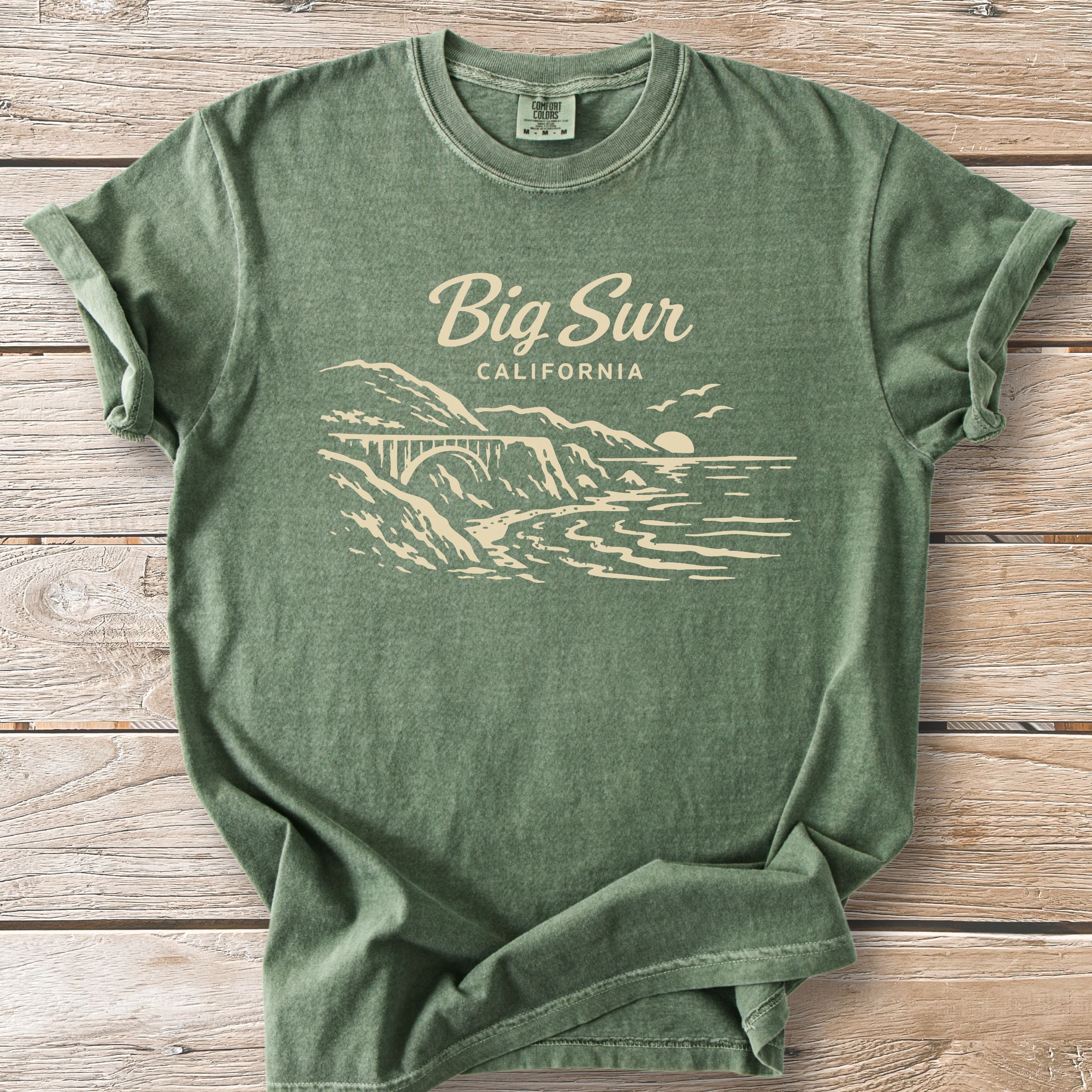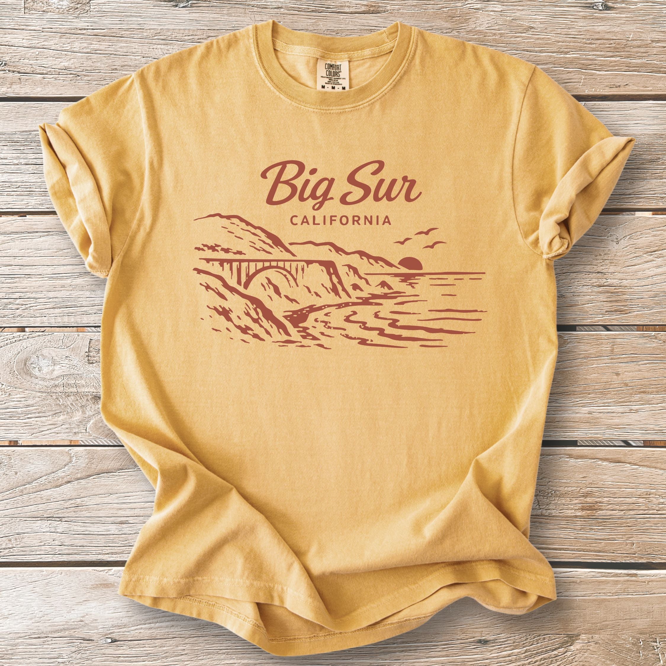 We print all our designs on the Comfort Colors® 1717 because nothing else feels quite like it. Heavyweight ring-spun cotton. Garment-dyed for a sun-faded, lived-in softness from day one. Relaxed fit that doesn't try too hard—just like California.