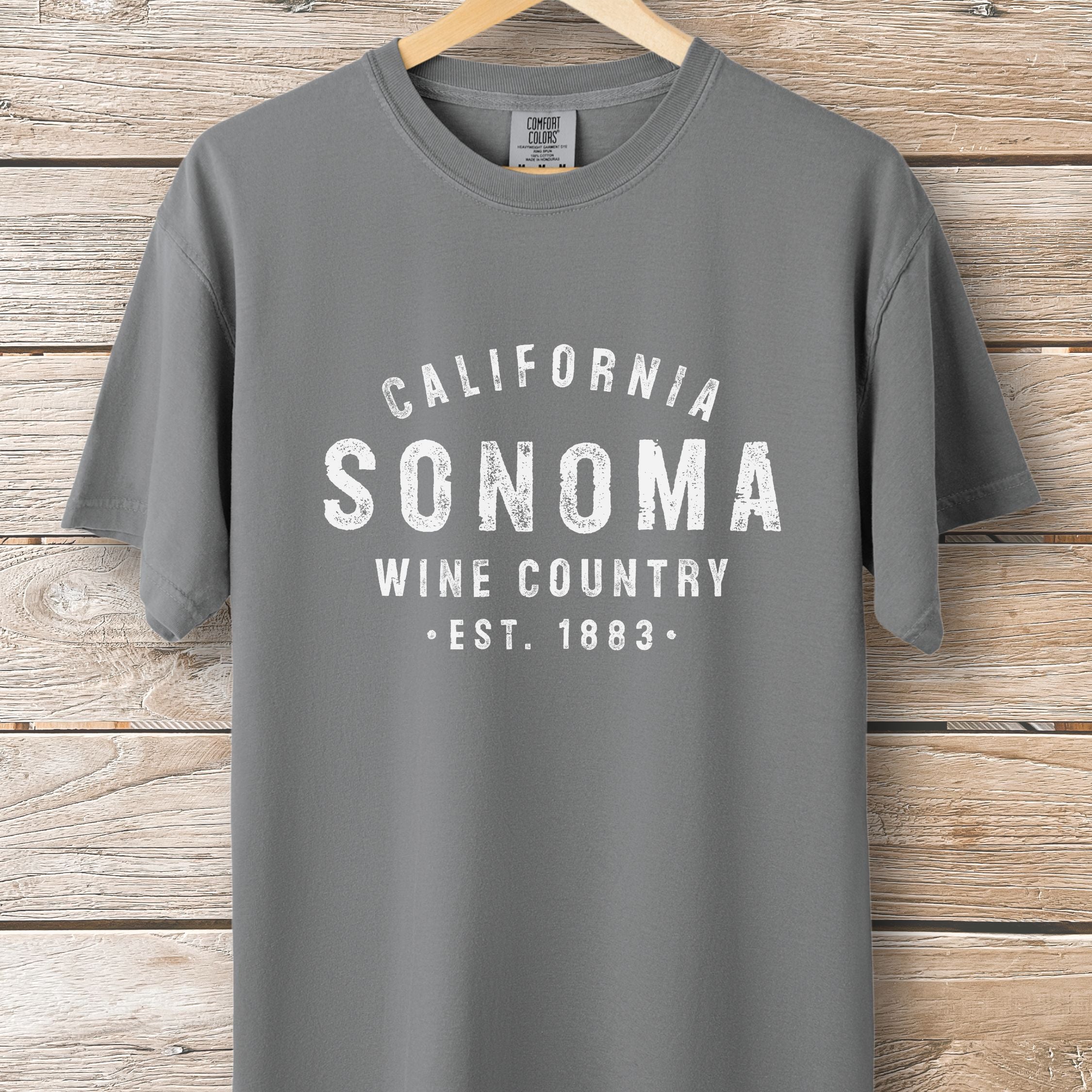 We print all our designs on the Comfort Colors® 1717 because nothing else feels quite like it. Heavyweight ring-spun cotton. Garment-dyed for a sun-faded, lived-in softness from day one. Relaxed fit that doesn't try too hard—just like California.